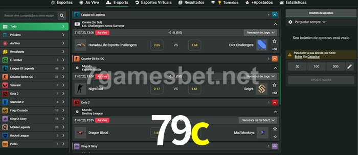 A aposta 79c oferece aos jogadores a experiência mais conveniente de apostas em eSports!